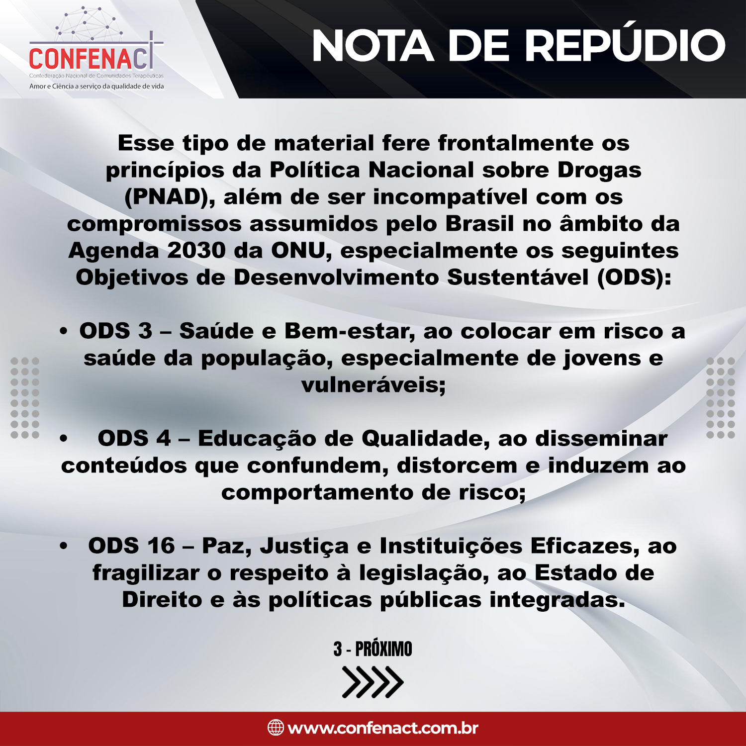 #CONFENACT #NotaDeRepúdio #PolíticasSobreDrogas #SegurançaPública #ComunidadesTerapêuticas #DigaNãoÀLegalização #RespeitoÀVida #ResponsabilidadeSocial